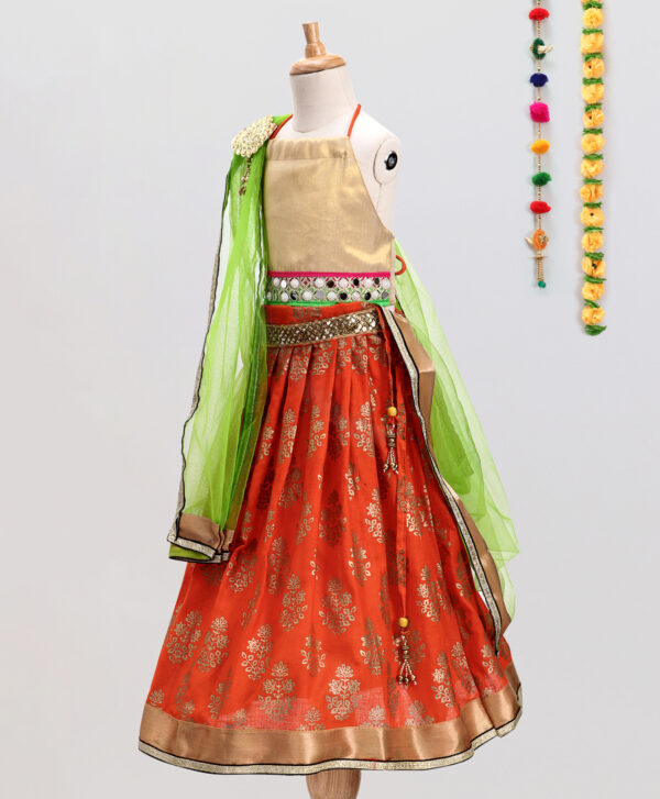 Item details Dress your little princess with Beautiful lehengacholi ,Red,Green,Black Lehenga with brocade blouse and net odhani FEATURES Fabric – Poly Silk, borders net. Laces Fit – Regular Halter Neck Type – Lehengacholi With Dupatta Sleeves – Sleeveless Occasion – Ethnic Wear, party wear, wedding wear. Items Included In The Package 1 Lehenga Set,with broach…