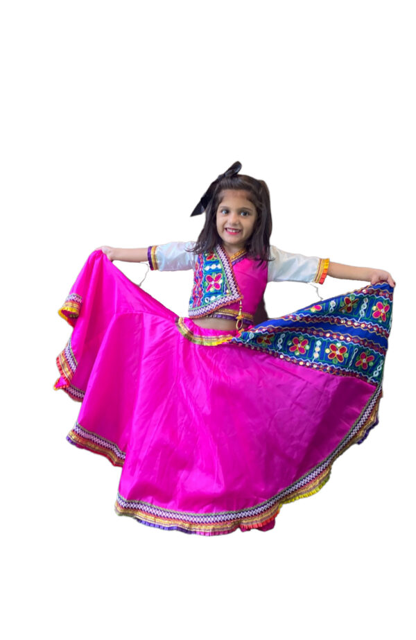 Small girl Lehenga choli choli Dress your little princess with Beautiful Mirror work ,Lehenga choli ,with dupatta . FEATURES Fabric – Satin, Cotton, zorzet dupatta Fit – Regular Neck-V Neck Type -lehenga choli with dupatta Sleeves – with sleeves. Occasion – Ethnic Wear, Navratri wear, casual wear Items Included In The Package 1 Lehenga…